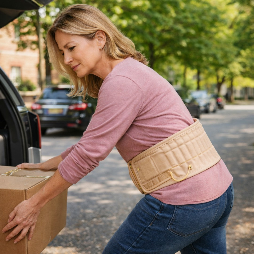 Der Rücken-Kompressionsgürtel unterstützt dich dabei, dich sicherer, wohler und freier zu bewegen – Tag für Tag.