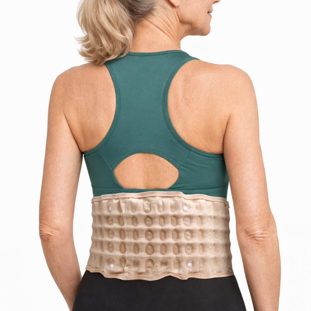 Der Rücken-Kompressionsgürtel kombiniert gezielte Unterstützung mit sanfter Entlastung im Lendenbereich.